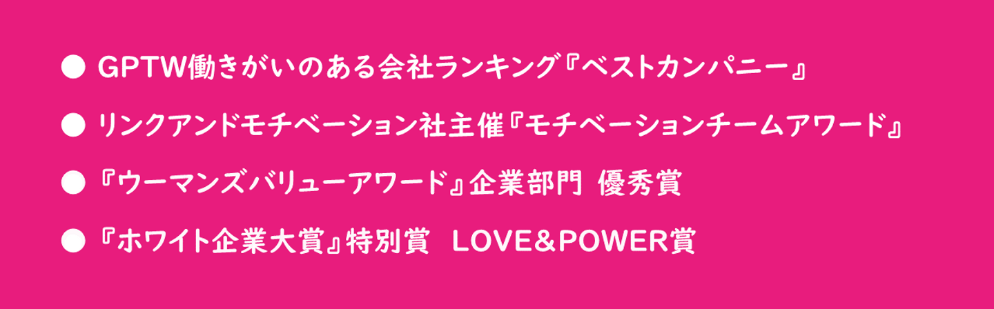 そして2023年1月には、「社員の幸せと働きがい、社会への貢献を大切にする企業」をホワイト企業と定義し、 「社会にホワイト企業の数が増えれば幸せな人が増え、社会はより良い方向へ進化するだろう」という想いのもとで 企画された『ホワイト企業大賞』にて、特別賞「LOVE&POWER賞」を受賞。おもてなし業界を支える私たちがこの特別賞をいただくことが、技術とサービスを通して世の中に心の豊かさを提供する「おもてなし業界を担う皆様の勇気」にもつながればと思っています!