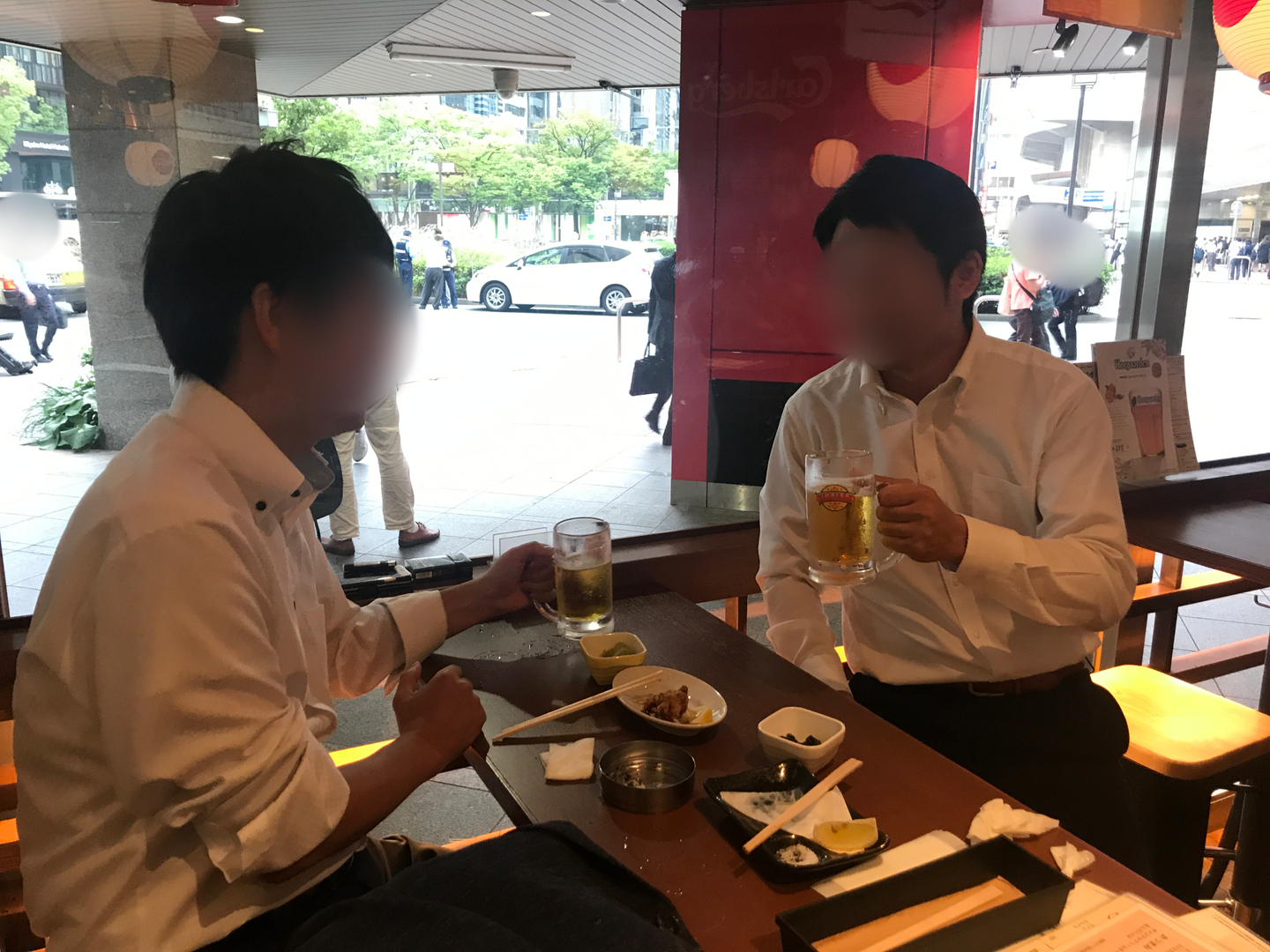 カフェワーク中に、たまたま福岡で別のクライアント企業を訪問していたYさんから電話が。即席で軽く飲みに行くことに。こうやってたまたま訪問エリアが同じメンバーで飲みに行くという文化も、LiPの特徴かもしれません。今日あった話やLiPの未来の話など、2人で熱く語りあってました。