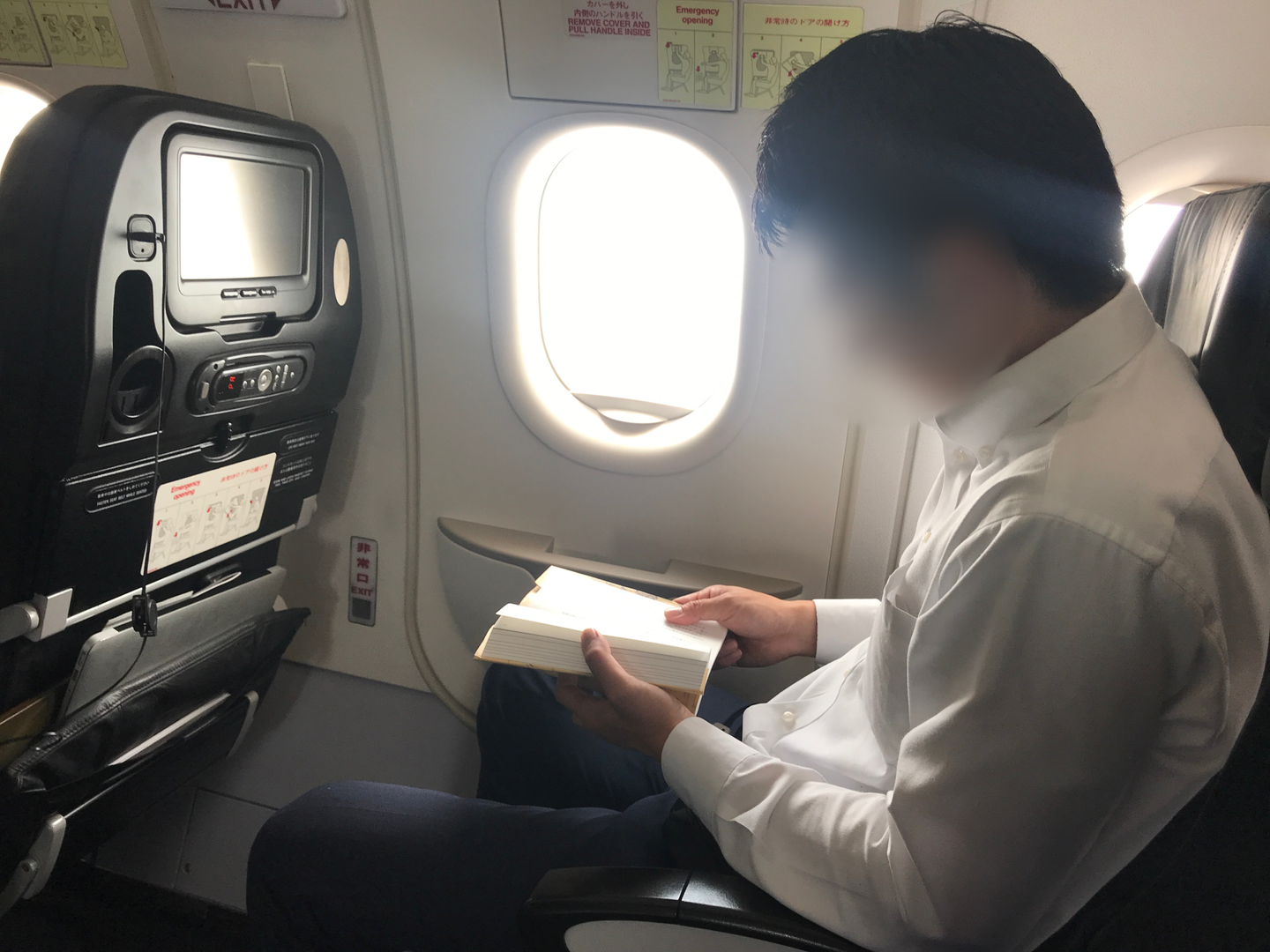 福岡までは2時間ほどのフライトなので、機内では読書やパソコン作業を。