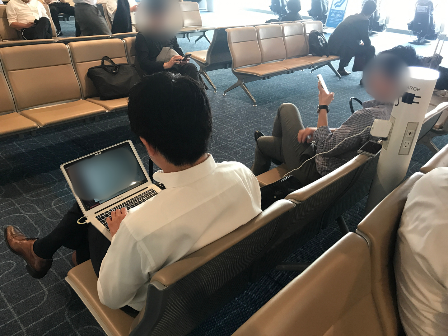 少し早めに空港に到着。待合室ではパソコンで作業していました。