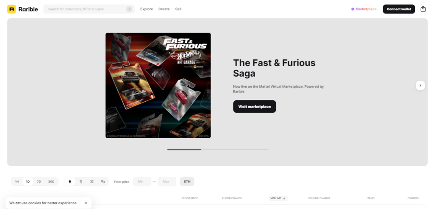 2017年12月にニューヨークを拠点にサービス開始された、世界最大規模のマーケットプレイスです。 200万件以上の取引数がされており、3700億以上の取引額を誇っています。 多くのNFTコンテンツがあり、NFTアートや音楽などが出品されています。 OpenSeaでNFT取引をする場合は、ウォレットに接続するだけでNFTの作成から売買が可能です。