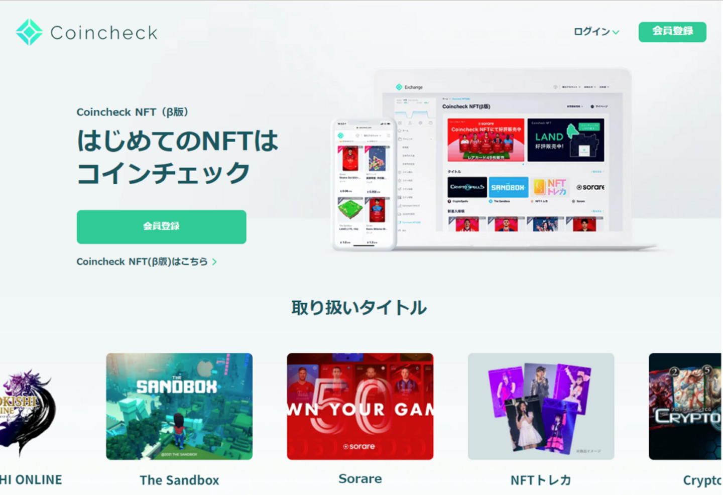 Coincheck NFTは、CoinCheck NFT(β版)とも言われており、暗号資産交換事業者が運営する国内初のNFTマーケットプレイスです。 2021年3月にスタートし、Coincheckの口座を解説しているユーザ同士がNFTの出品・購入・保管などができます。 取り扱いNFTは、「ゲームアセット」「トレーディングカード」とまだ少ないです。