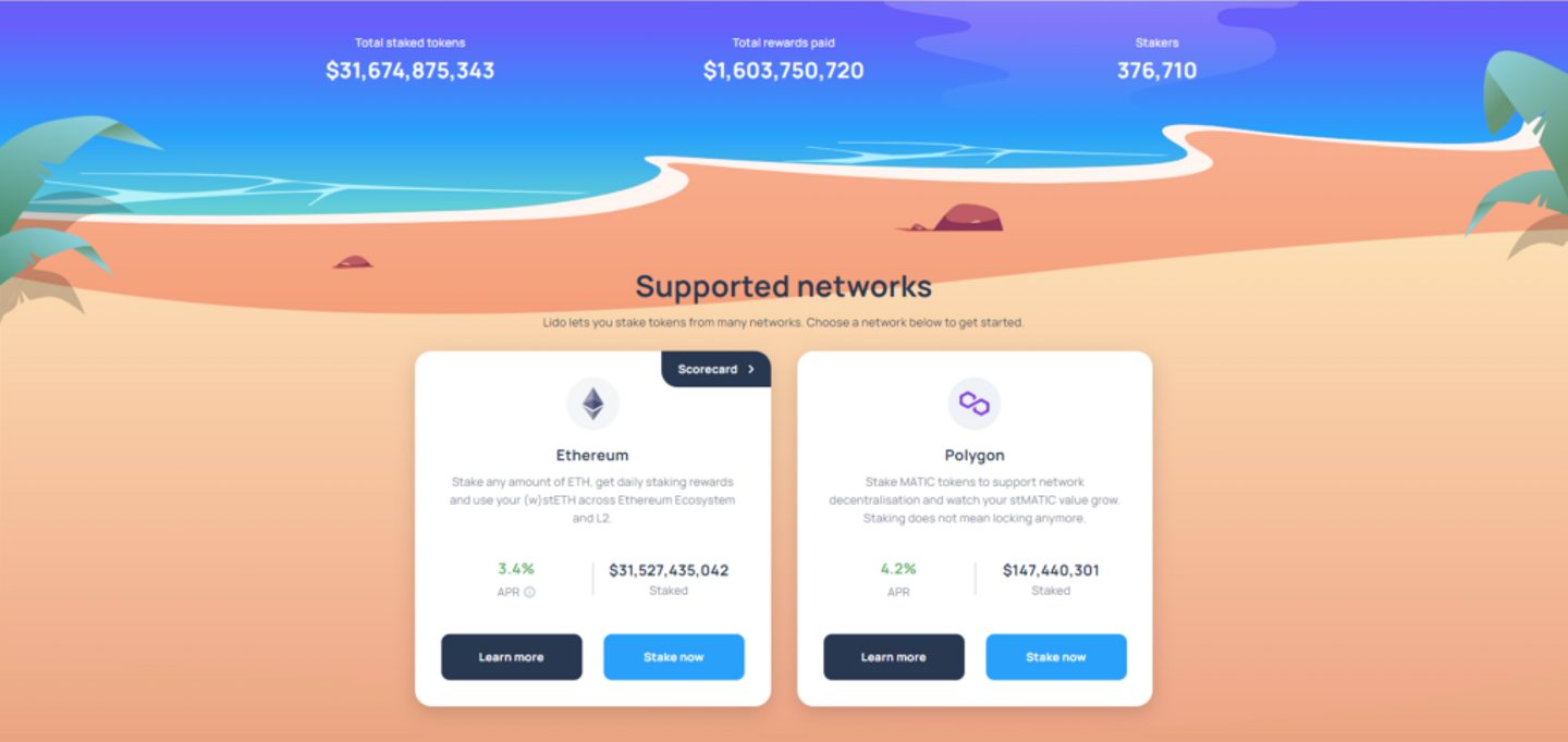 Lidoは、DeFi市場で最も急成長している リキッドステーキング デリバティブプロトコルの一つで、他のプロジェクトと比較して圧倒的な総ロック量(TVL)を誇ります。Lidoは現在、Ethereum、Polygnの2つのネットワークをサポートしており、将来的にはOptimismやArbitrumなどのレイヤー2ソリューションへの拡張を計画しています。