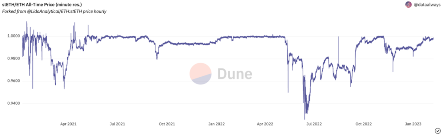 従って、USTのペグ解除と崩壊は、担保資産の不足に起因するリスクから発生しました。リキッドステーキング トークンについては、流動性が低いためデペグのリスクはしばしば発生しますが、スマートコントラクトによる明確な担保が存在するため、崩壊することはありません。