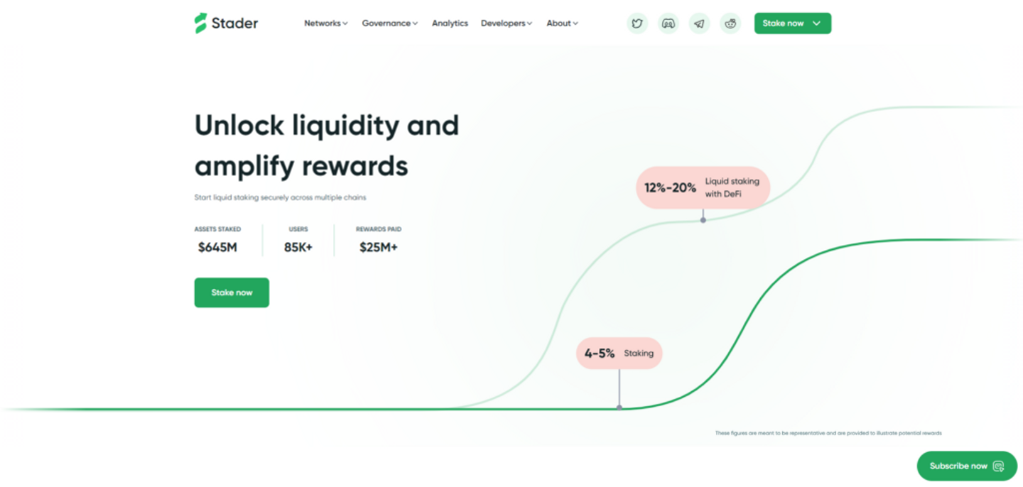 Stader Labsは、Ethereum、BNB Chain、Near、Terra 2.0、Fantom、Hedera、Polygonを含む7つのネットワークをサポートするリキッドステーキング デリバティブネットワークです。将来的にはAvalancheやSolanaを含む範囲を拡大する予定です。