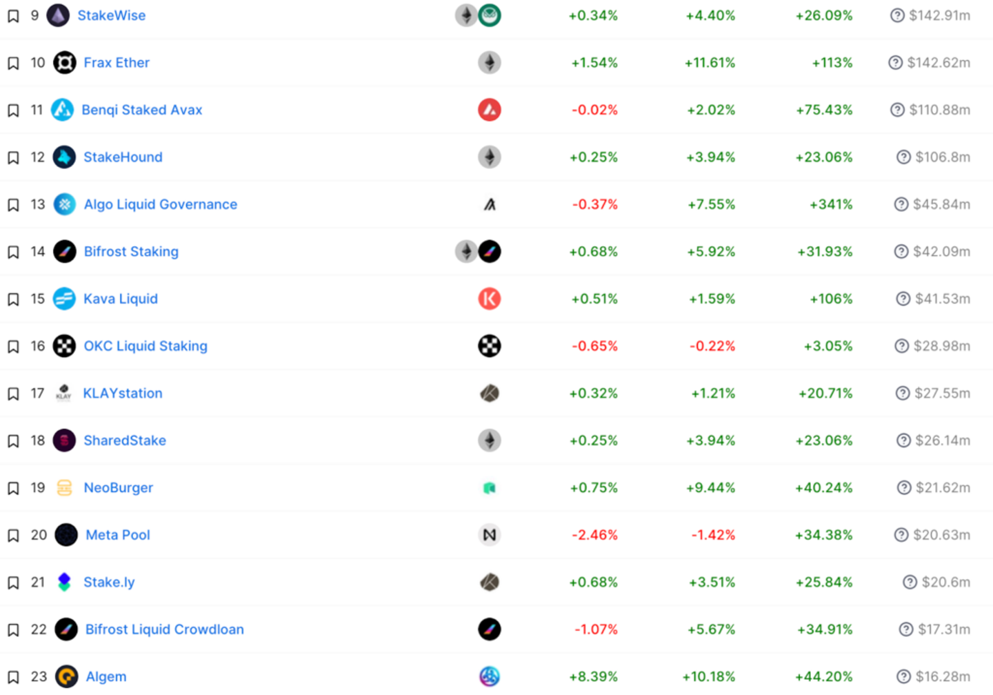 その他のリキッドステーキング デリバティブプロジェクト上記は市場をリードするリキッドステーキング デリバティブプロジェクトですが、すべてのPoSブロックチェーンをカバーしているわけではありません。AptosではTortuga、NearではMetapool、AlgoではAlgo Liquid Governanceなど、特定のコイン専用の開発プロジェクトが存在します。DefiLlamaページで詳細を確認し、あなたのコインに適したリキッドステーキングデリバティブプロジェクトを見つけることができます。