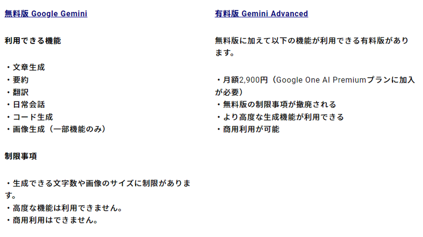 ・ビジネスで利用する場合は、有料版のGemini Advancedがおすすめです。