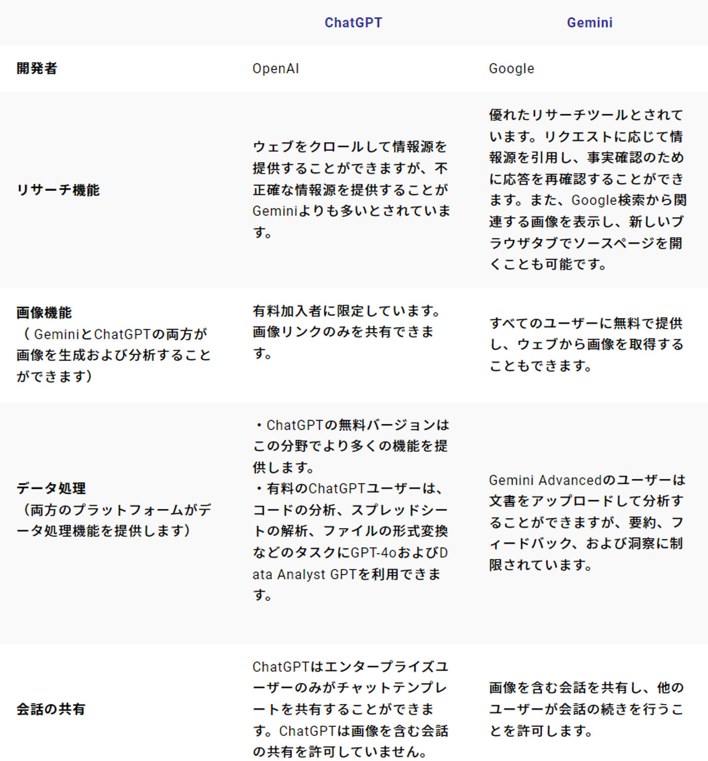 - ChatGPTとの比較・GeminiとChatGPTの違いとは?