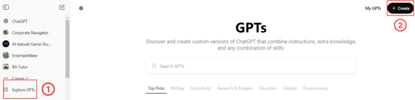 ・カスタムGPTを作成し、特定のタスクに対応するバージョンを構築できます。