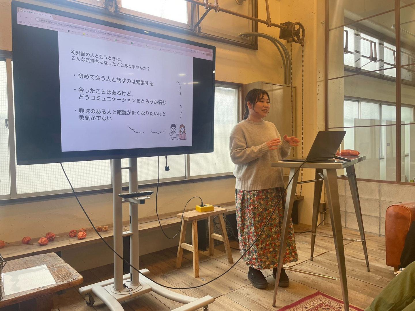どんな関係も最初は「知り合う」ことからはじまります。 台東区をめぐるフィールドワークは、実際に現場に出向いて人と関わり、コミュニケーションを取って「知り合う」貴重な機会となりました。 その「知り合う」経験をしたうえで、「初対面の人に対してのコミュニケーション」について学ぶセミナー形式のワークショップを行いました。