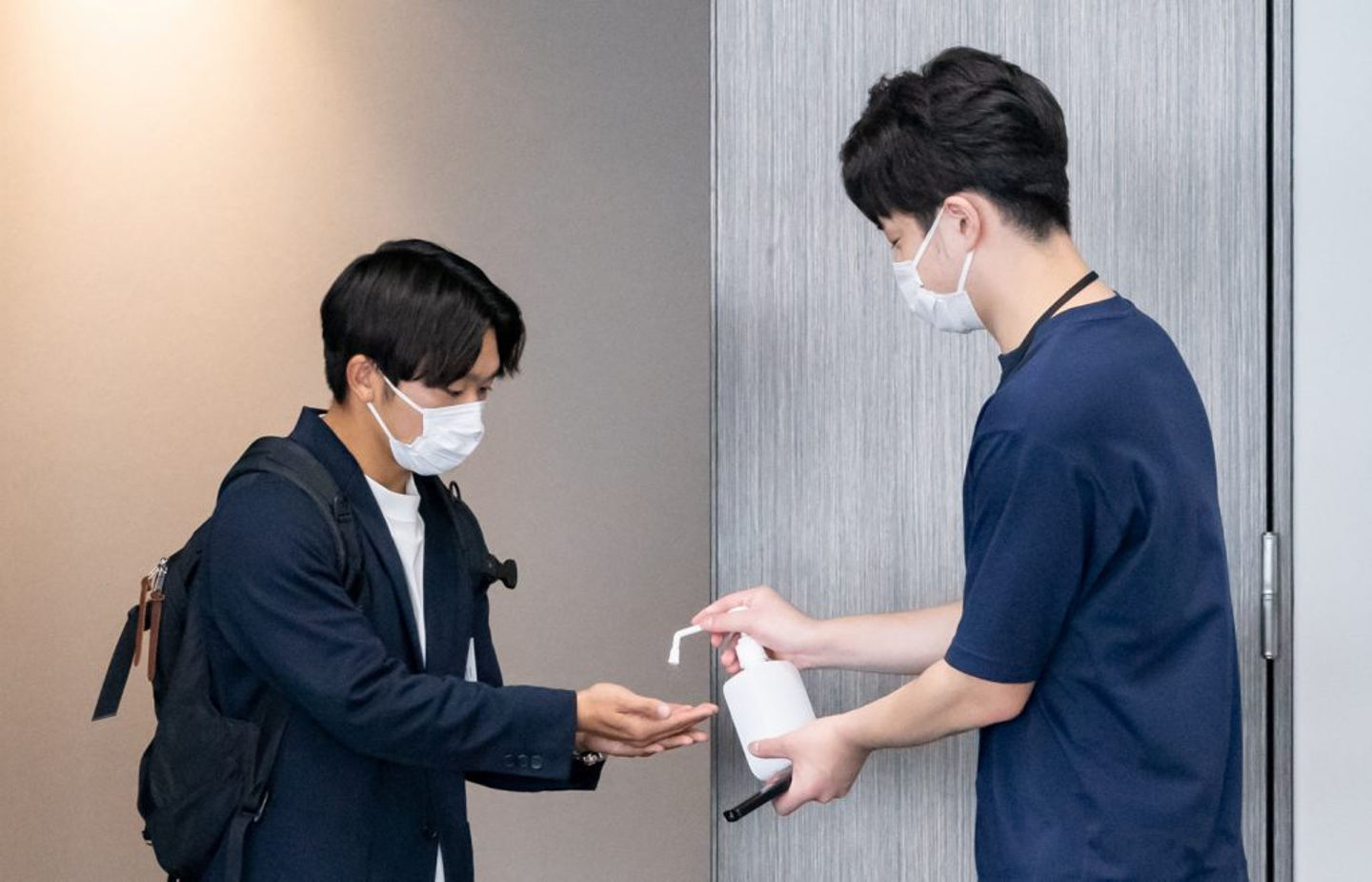 感染に注意し、マスクや検温、消毒を実施しつつ内定者が集まりました!