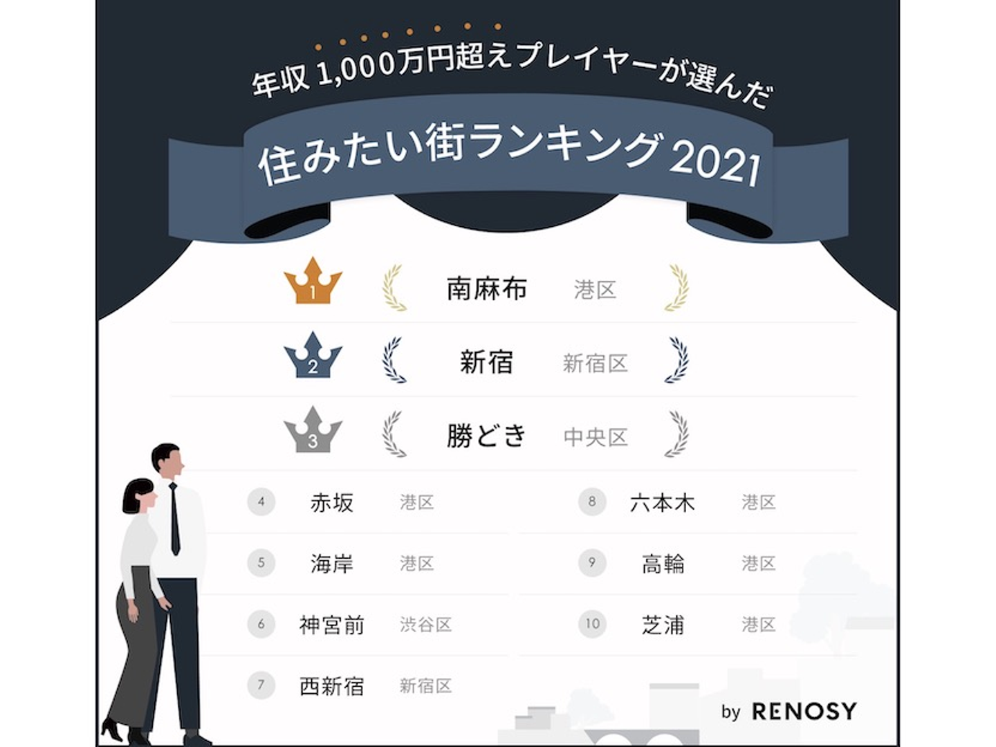 年収1,000万円超えプレイヤーが選んだ「住みたい街ランキング2021 by RENOSY」を発表!