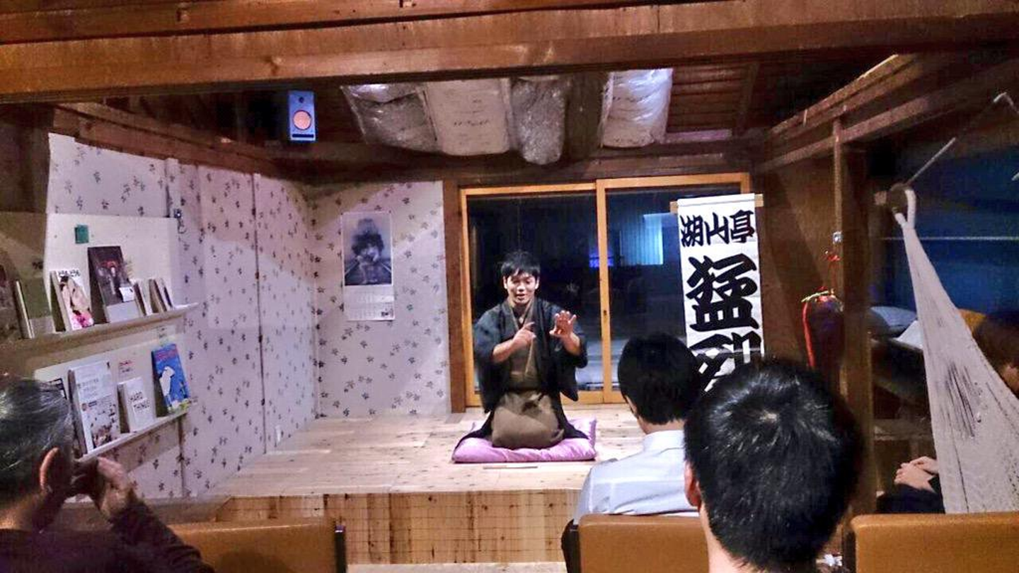 芸名は湖山亭猛烈。猛烈と書いて”がむしゃら”と読みます。