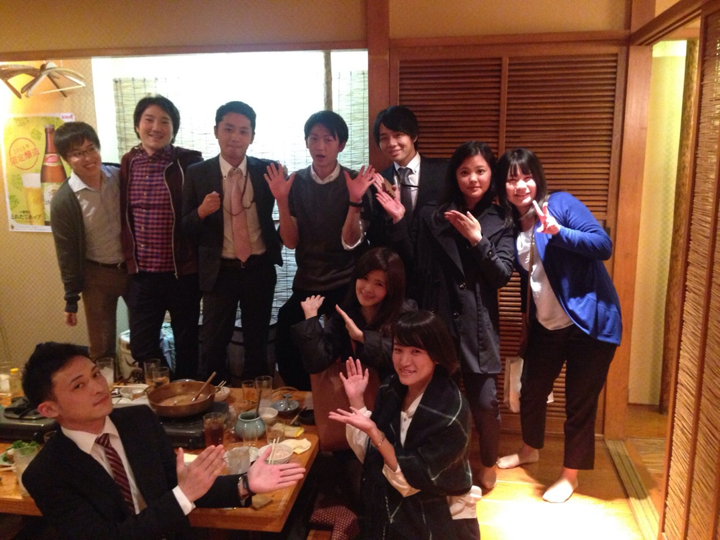 ▲大手新聞社に勤めていた頃の伊藤(写真中央で両手を広げているのが伊藤)