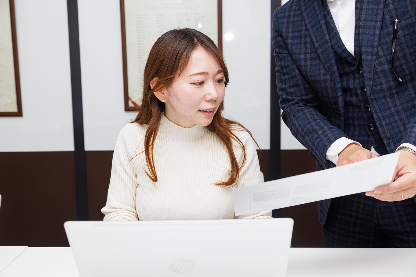 帰社後に先輩と一緒に振り返り。