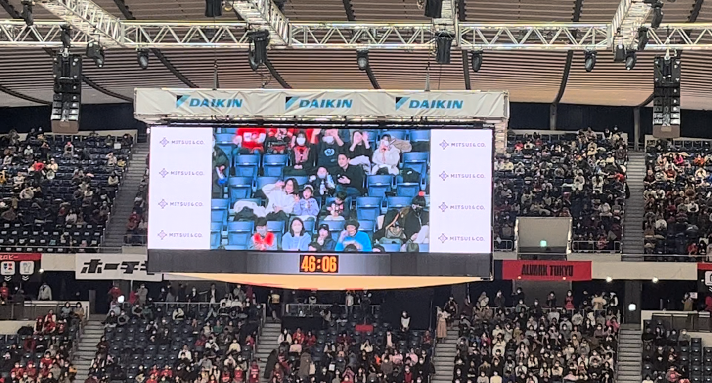 試合中、リヴァンプ社員とご家族がスクリーンに映し出される一幕も!