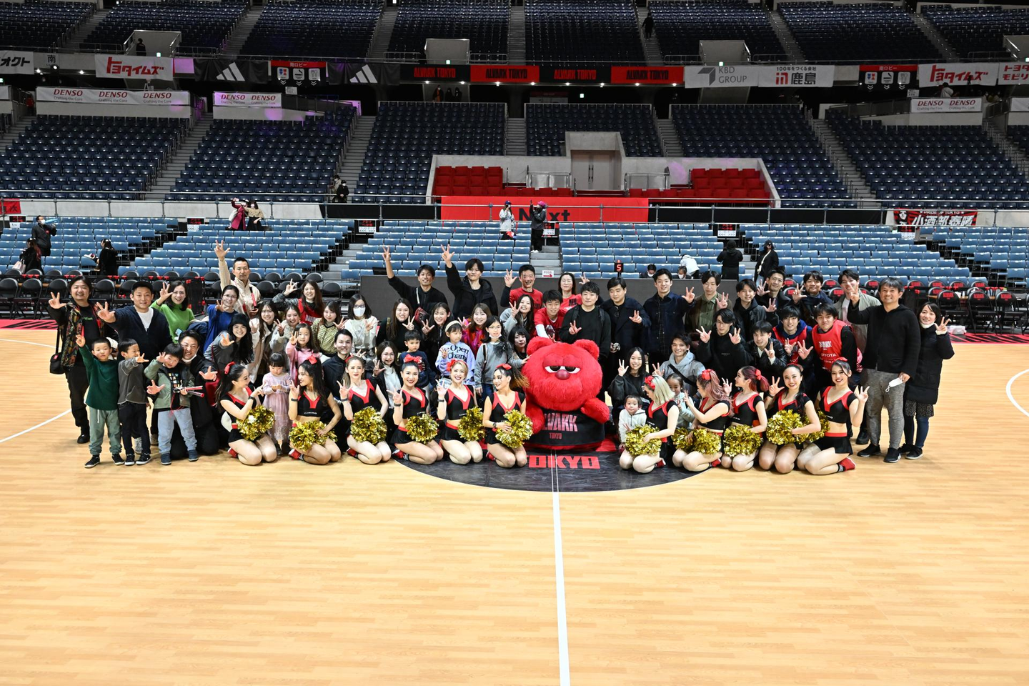 取り組みの一例でコート上での写真撮影を企画させていただきました。ご家族の皆様、特に小さいお子様がいらっしゃるリヴァンプ社員の皆様にもご参加いただけるよう、お時間やオペレーションについてはアルバルク東京の方にもご協力いただきながら調整させていただきました。