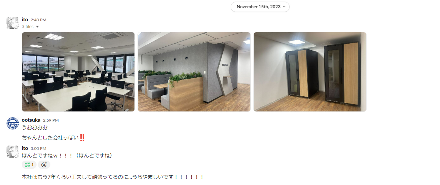 先日本社に出社した時に私が(なんか今日もう良くね?)と思ったので大塚さんに「今日もう良くないっすか?飲みいきましょうよ!」と言ったら大塚さんが本社にいるエンジニアに「今日飲み行く人~」と声をかけて新卒エンジニアも交えて定時後に6人くらいで飲みに行きました。そんなフランクな関係が築ける最高の方です。