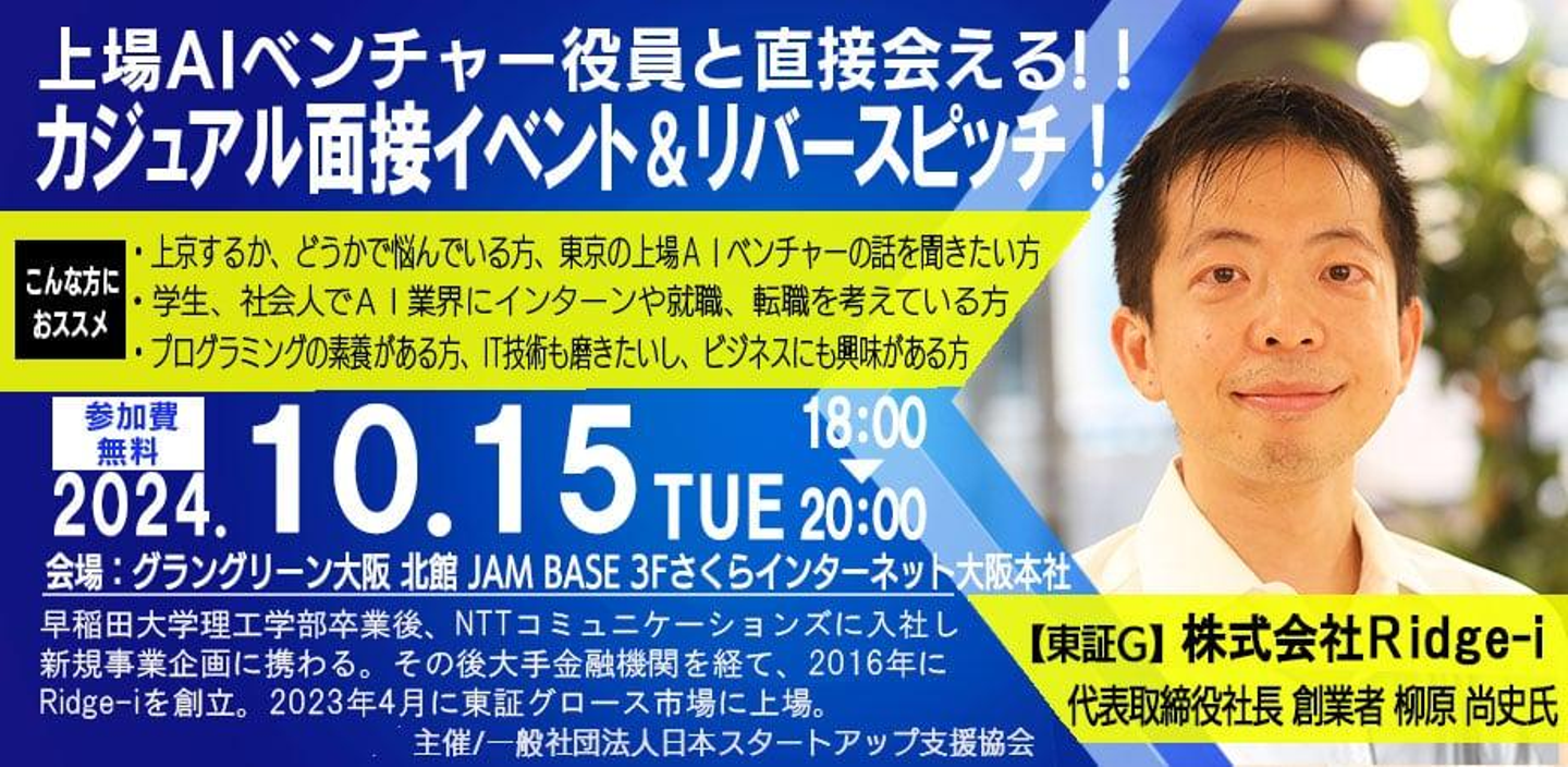 大阪で開催されるカジュアル面談イベントに弊社代表の柳原が参加します。