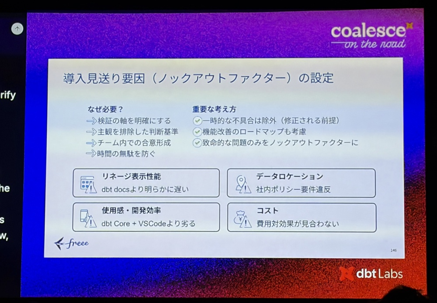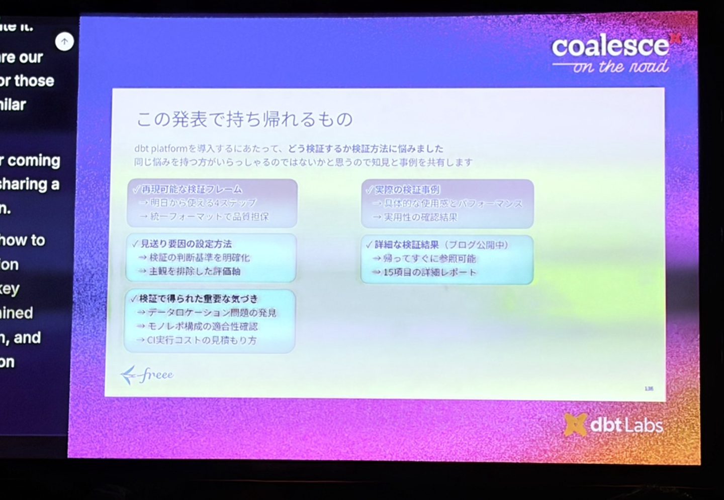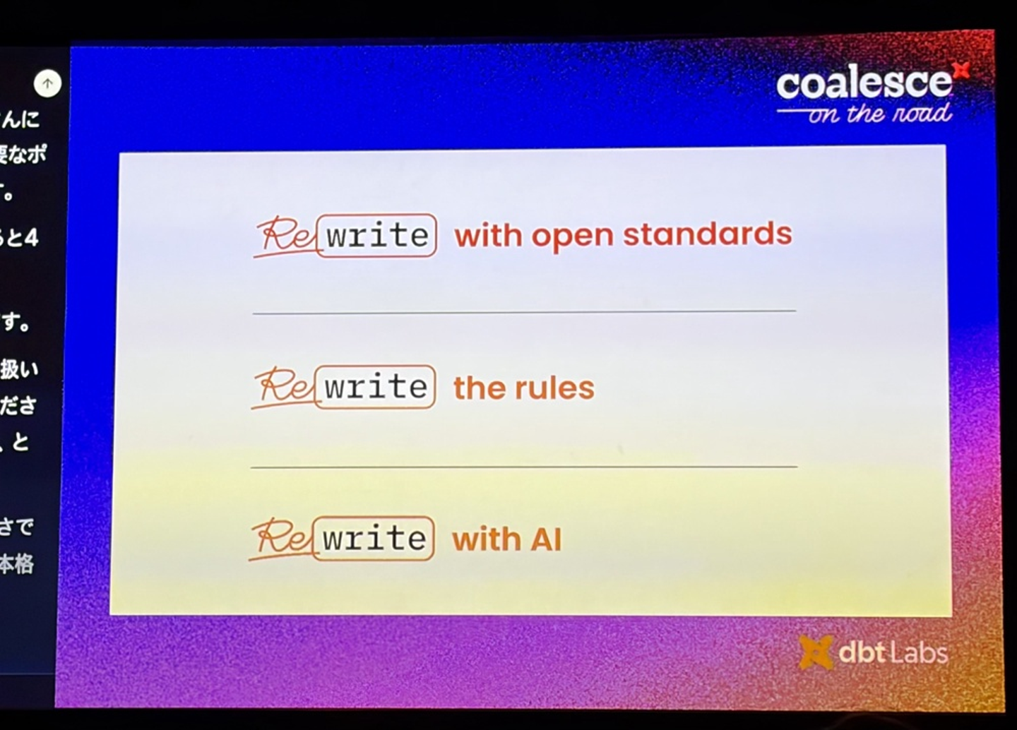 dbtのCoalesceといえばラスベガスで開催されるイベントですが、そのワールドツアーの1日イベントが東京で初開催!コア開発者やプロダクトマネージャーが実際に日本へ来て話をするとても熱いイベントです。