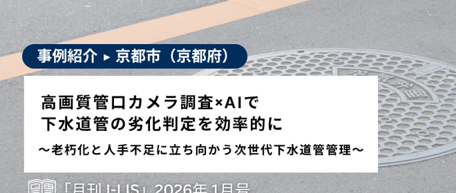 京都市上下水道局・パシフィックコンサルタンツ株式会社・株式会社Ristによる「画像認識AIを活用した下水道管路調査画像の劣化判定等に関する共同研究」の取り組みが選出されました。・受賞件名:「AI×スポーツカメラによる新たな下水道管内調査」・受賞部門:インフラメンテナンス チャレンジ賞・受賞理由:下水道管路調査において、膨大な調査延長・コスト等の課題を解決するため、高画質管口カメラ調査と AI 画像判定技術を組み合わせる手法を開発したこと。具体的には、現場での撮影品質を確保する「管内画像良否判定ツール」と劣化度を定量的に評価する「管内劣化判定ツール」の 2 種類の AI ツールにより、管路...
