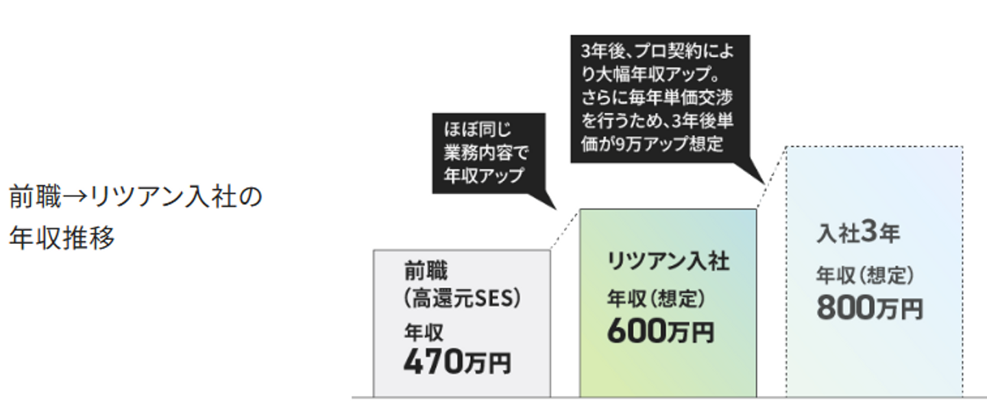 高還元SESの中ではリツアンが一番待遇が良さそうという事は知っていて、事業会社やコンサルも受けた上で、リツアンに入る事にしました。