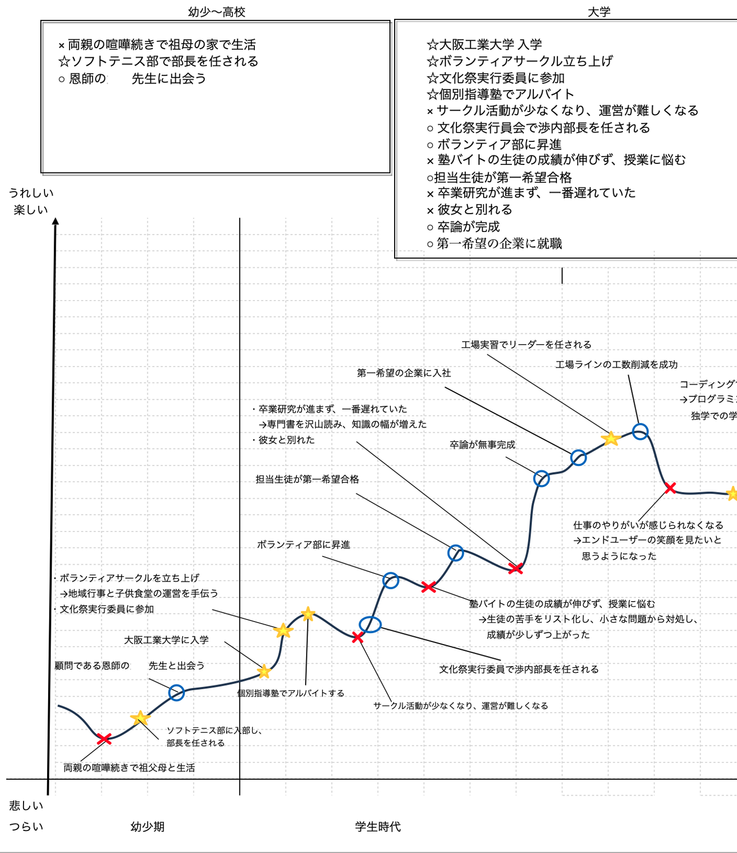 筆者が実際に書いたライフフェイクシート(幼少期〜学生時代)