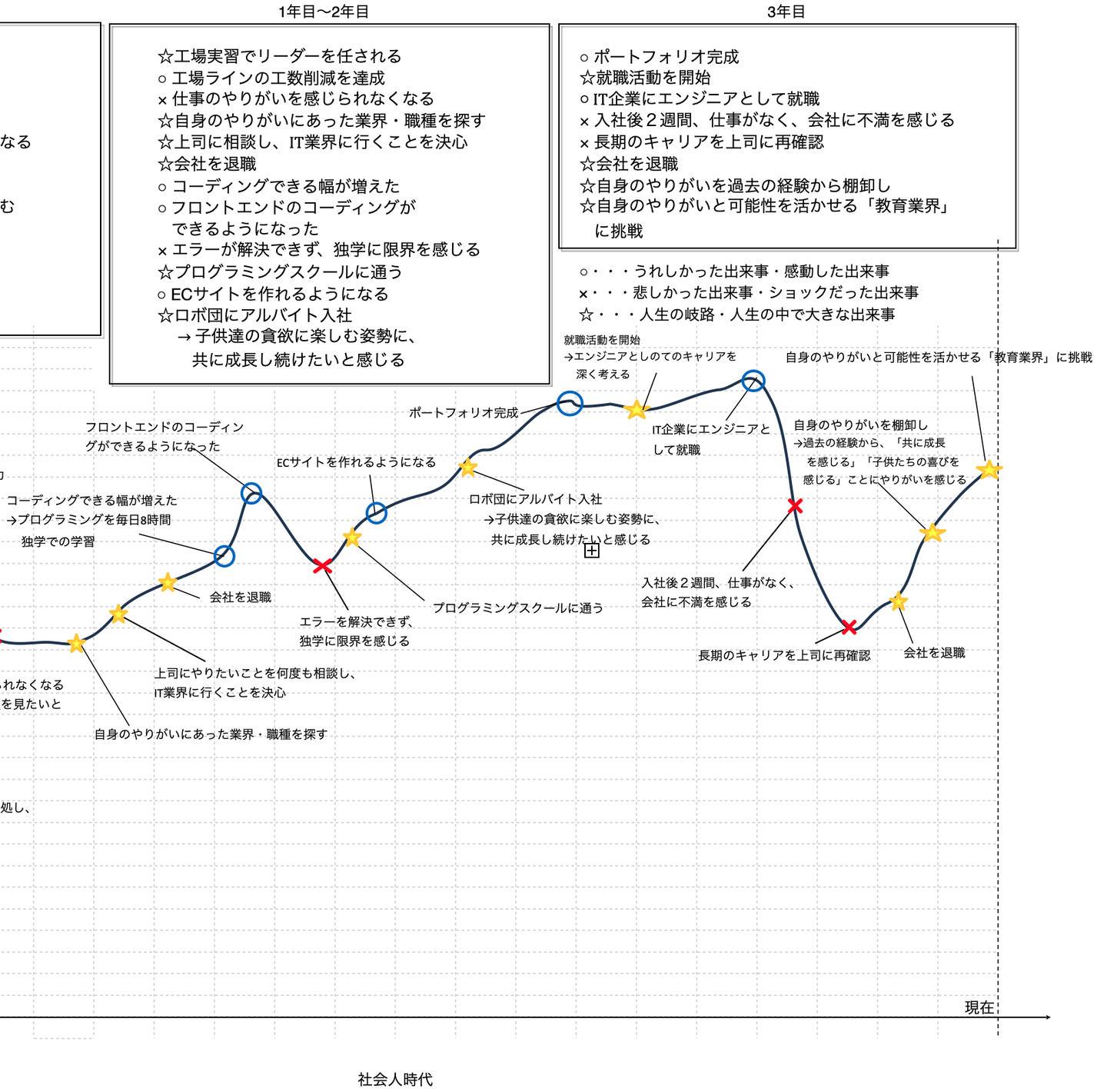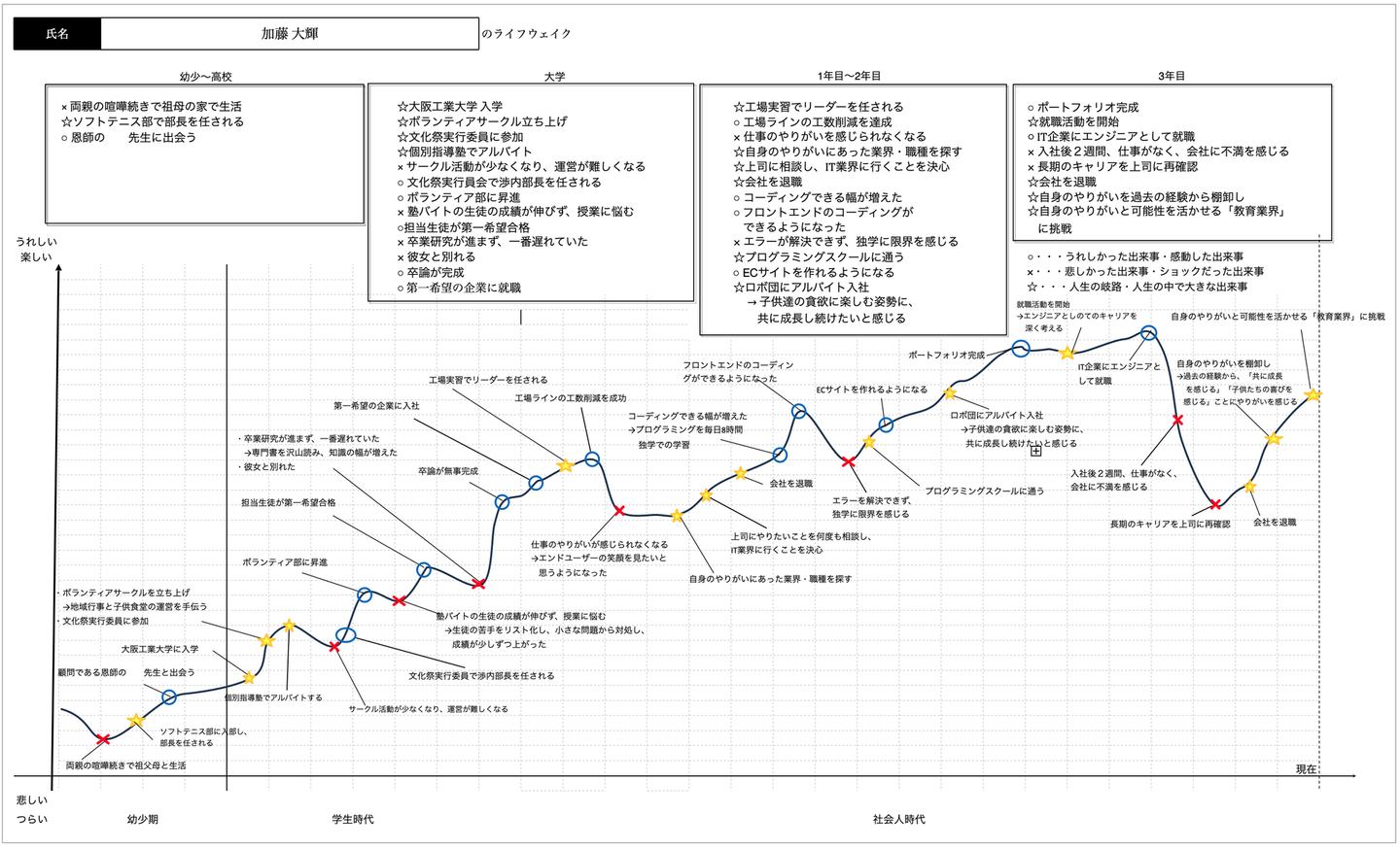 筆者が実際に書いたライフフェイクシート(社会人時代)