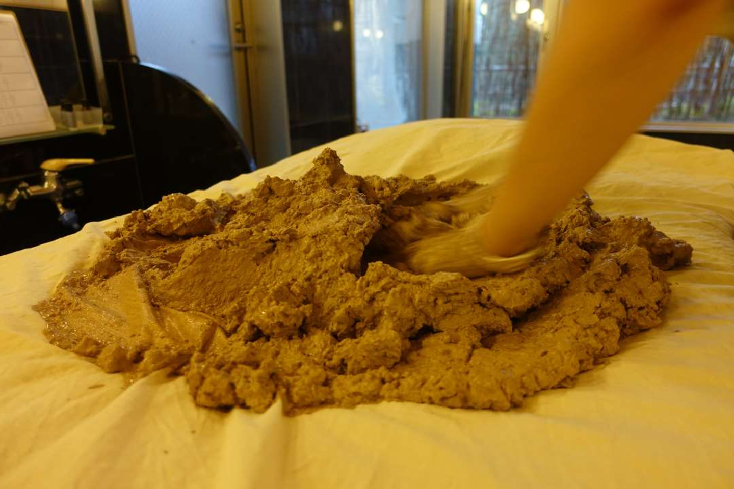 泥パックのイメージです。これを背中や患部に塗っていきます。