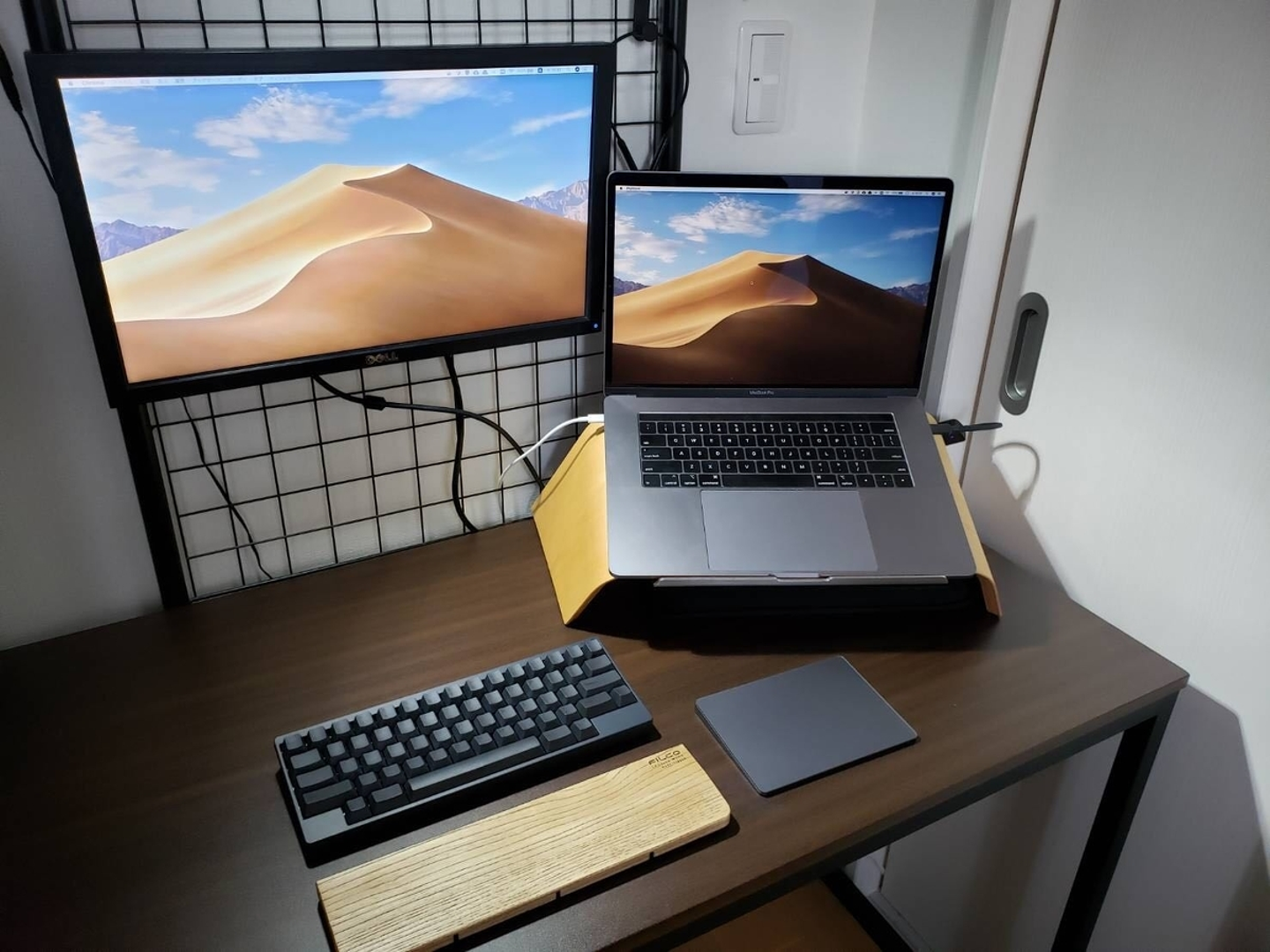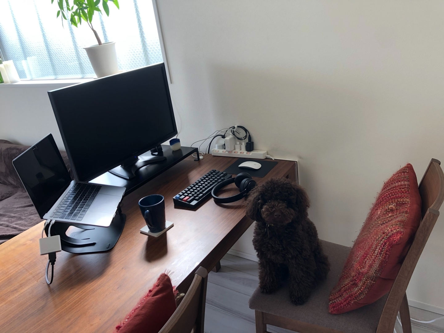 キーボードがとても気に入っています。周りのエンジニアが使っているのでHHKBキーボードを買ってしまいました。目線の高さにモニターがないとすぐ肩こりになるので高さもこだわりポイントです。