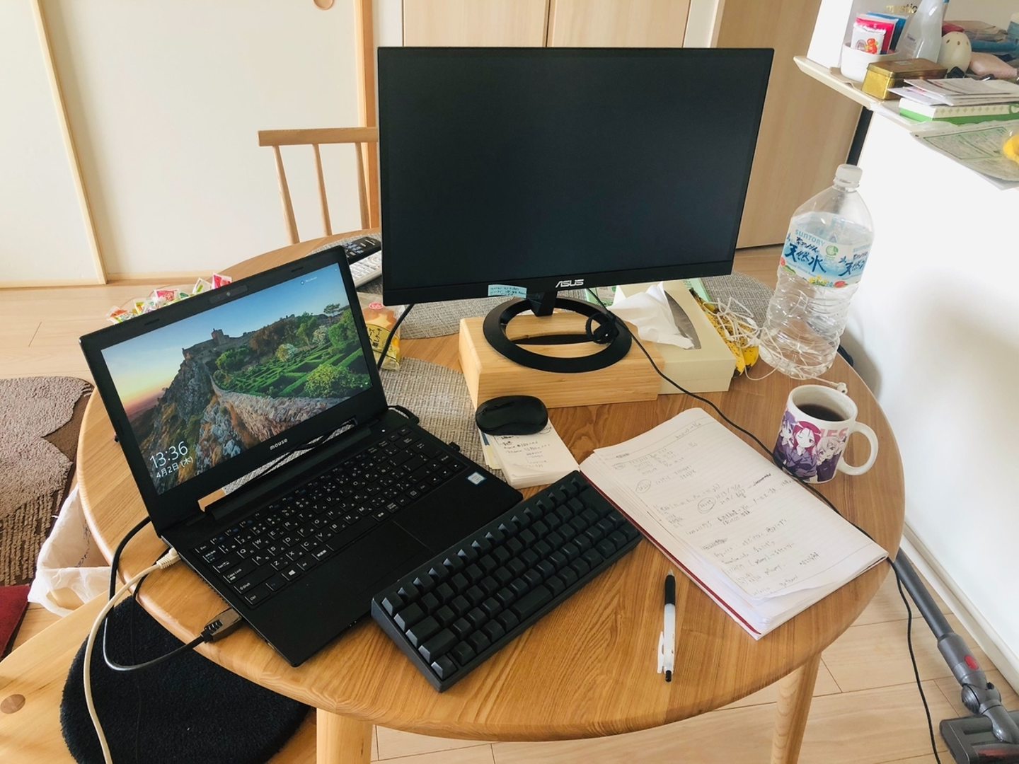 モニターがきて最低限のオフィス環境の再現はできたかなと思います。