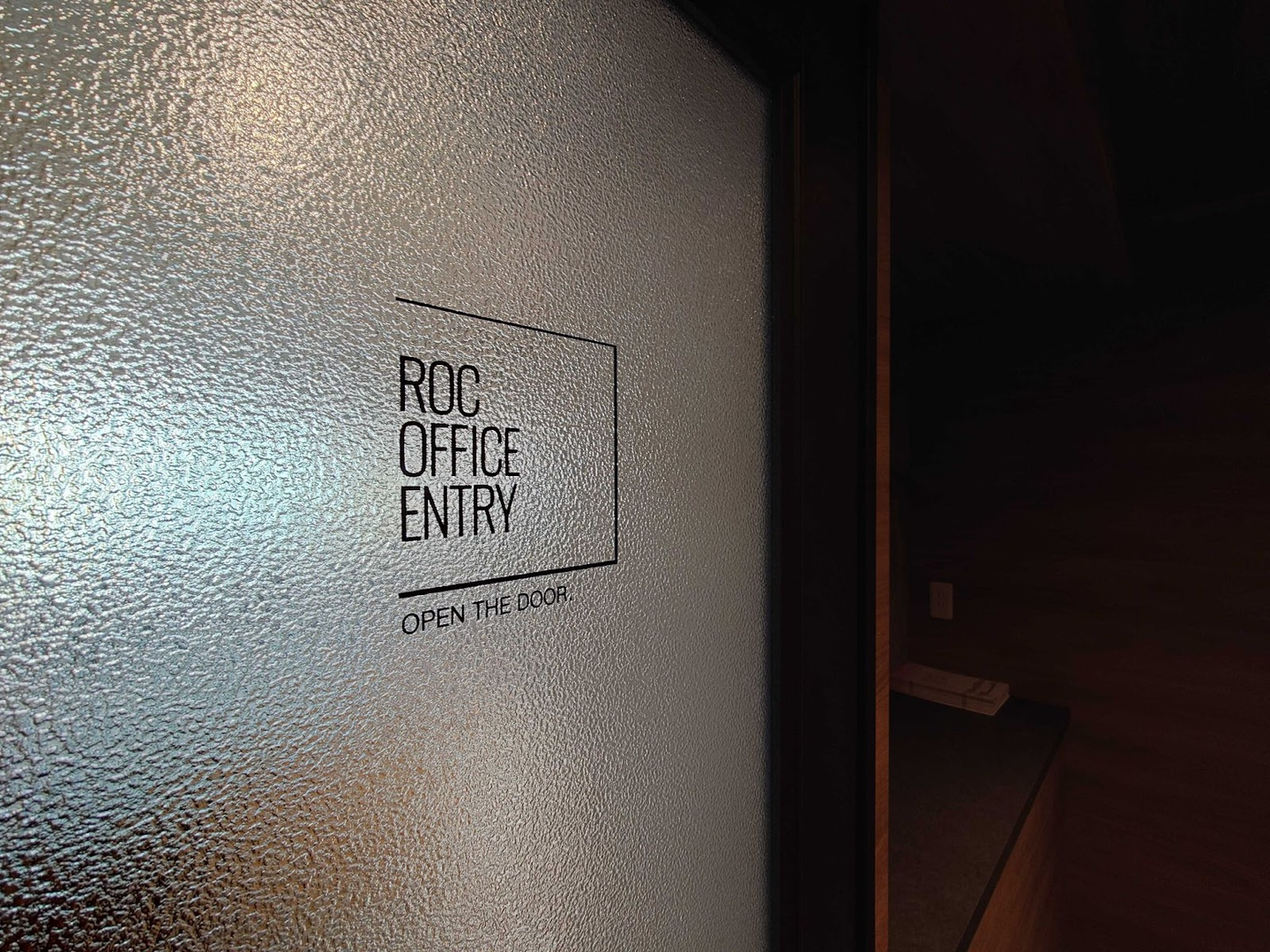 ロゴのすぐ隣には、オープンスペースへと続くドアが設置されています。