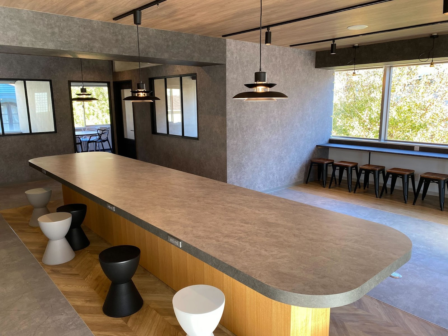 大テーブルの横にはベンチになっている席もあるので、自分の好きな席で仕事をすることができます。