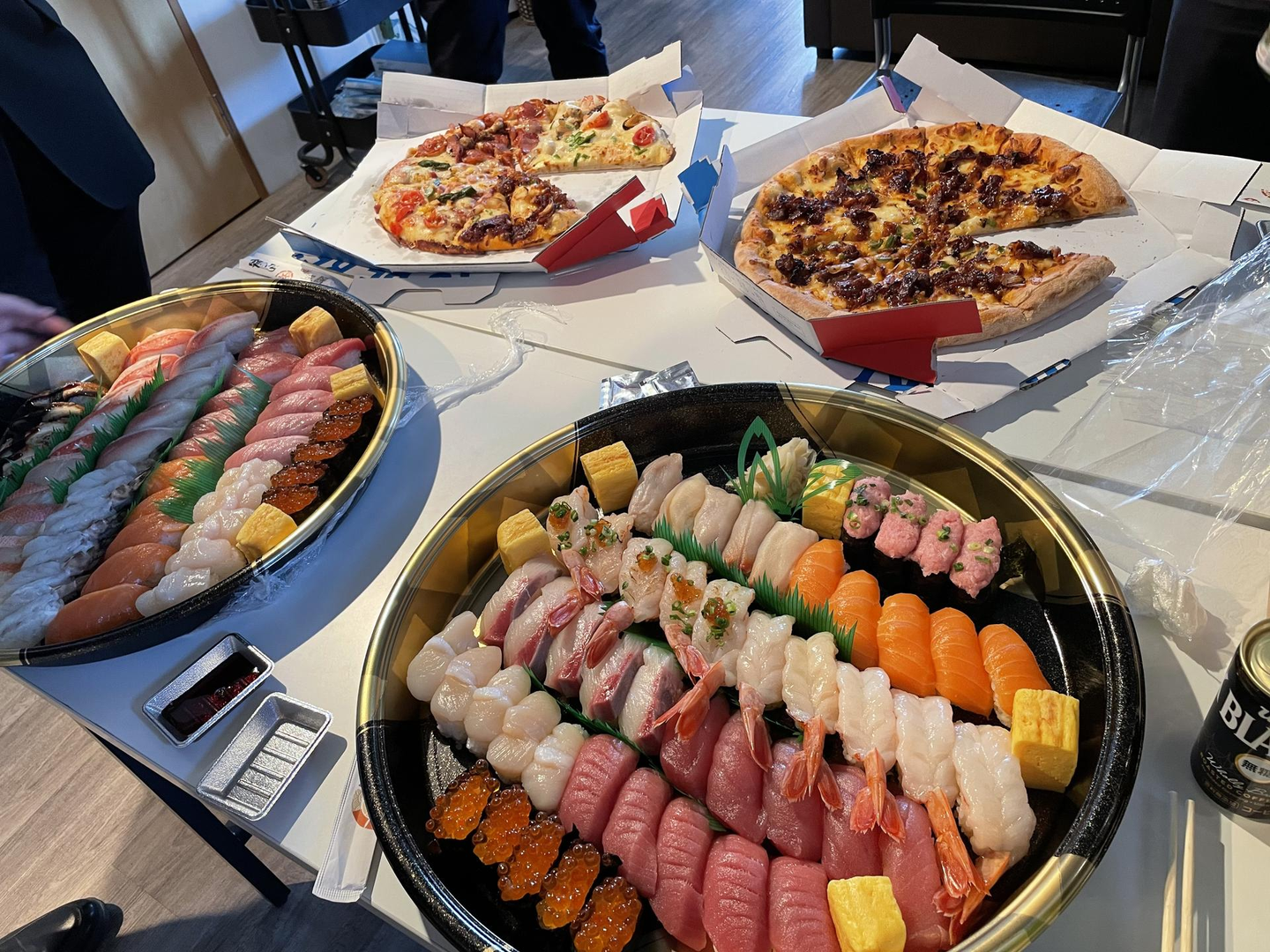 そしてこの日もお寿司とピザの出前!