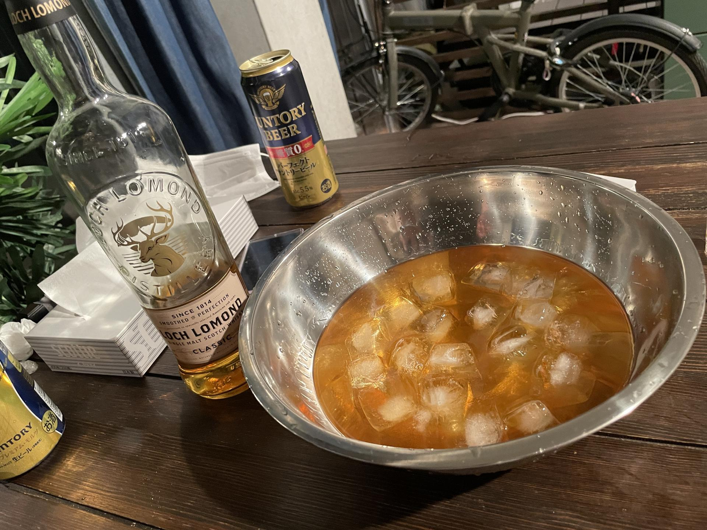 そして突如始まるゲーム(の罰ゲーム用ウイスキーの写真)