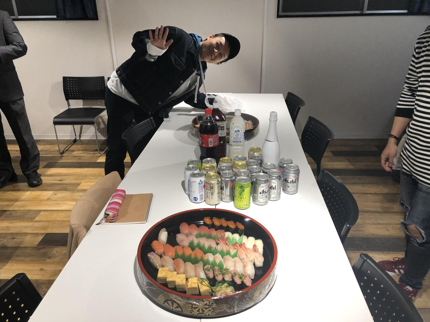 ニッコニコ笑顔な住岡君&お寿司&お酒!