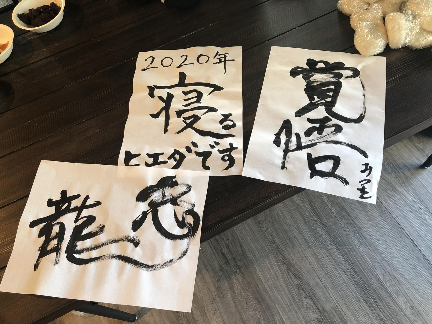その新年会での書初め!