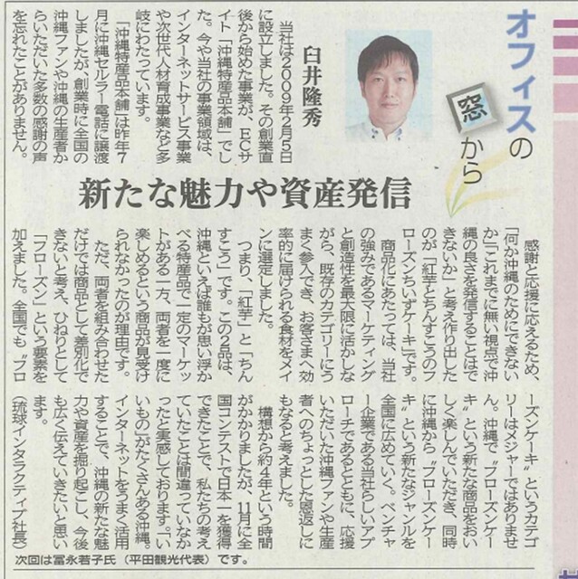 12月31日の沖縄タイムス・日曜経済面「オフィスの窓から」において、臼井のコラム第3回目が掲載されました!