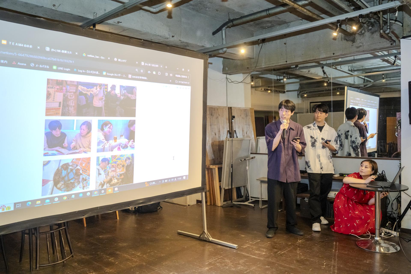 今回は社内の福利厚生として、各グループ4~5名ごとに会社から10万円を贈呈。「新しい経験をしてください」との業務命令が下されました。各グループごとに10万円を「どのように使ったのか・どのような発見があったのか」を発表いただきました。