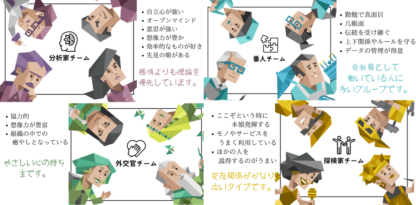 それぞれの性格タイプは、下記の4つのチームに分けることができます✨