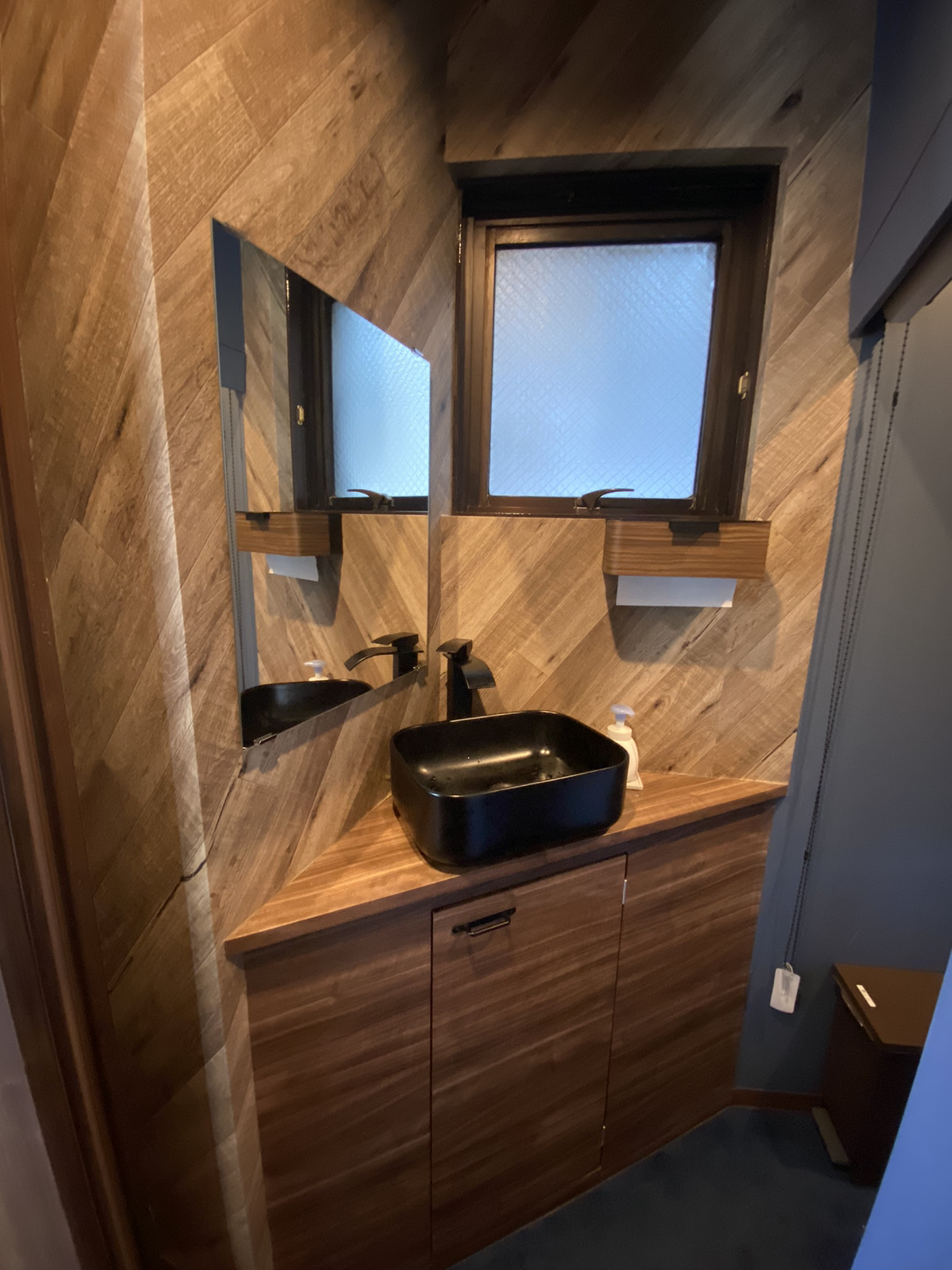 ▲写真は給湯室手前の手洗器。こちらもこだわりのオーダーメイドです!