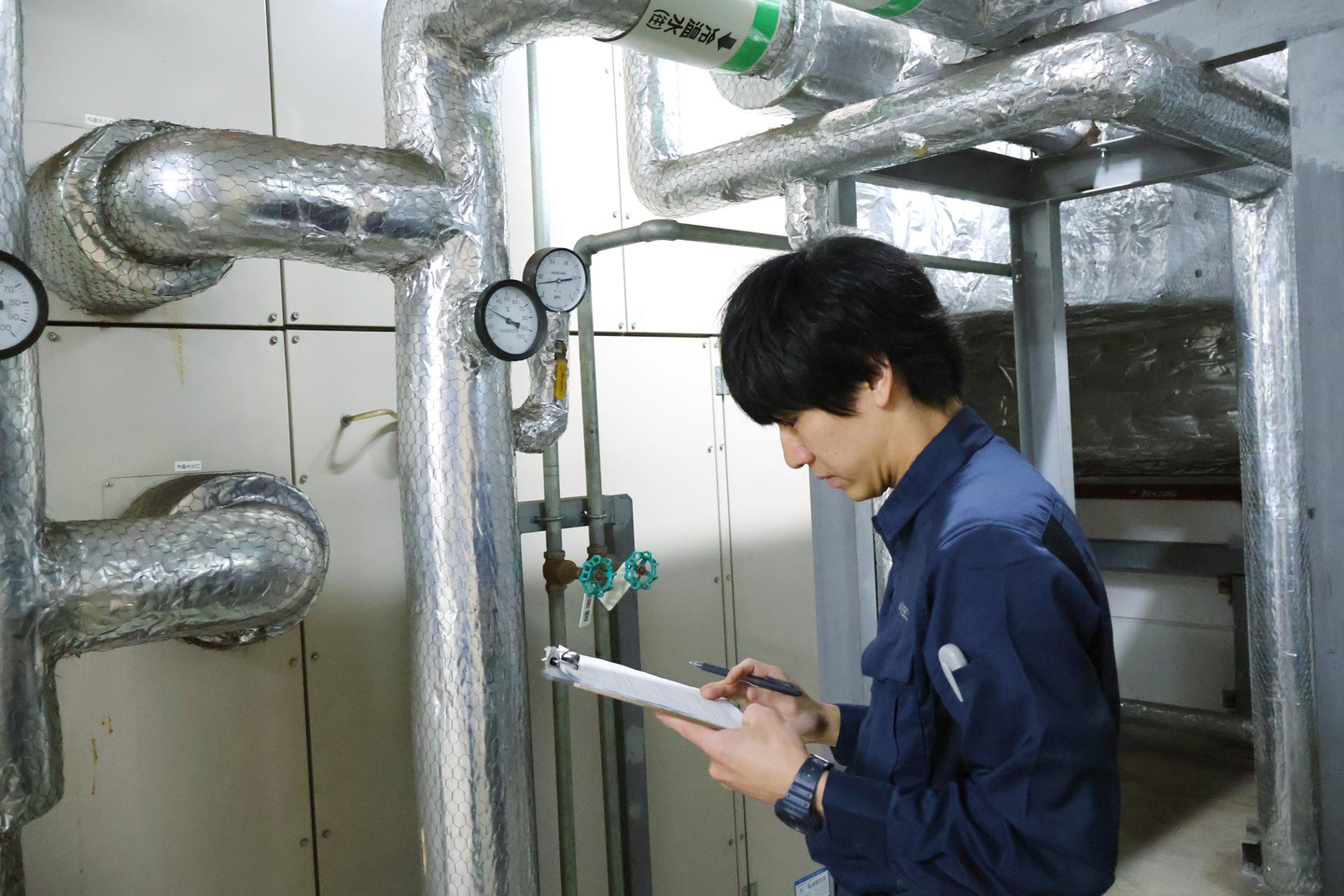 設備・機械の点検風景(ここは、某商業施設の裏にある空調機械室です!)