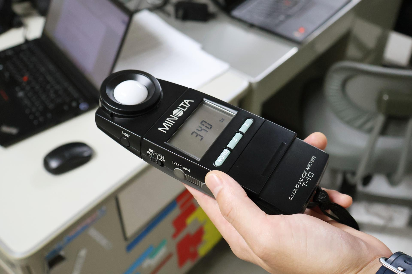 (測定場所では340ルクスで、基準値を満たしていました。一般的な事務作業なら300ルクス以上というような基準があります!)