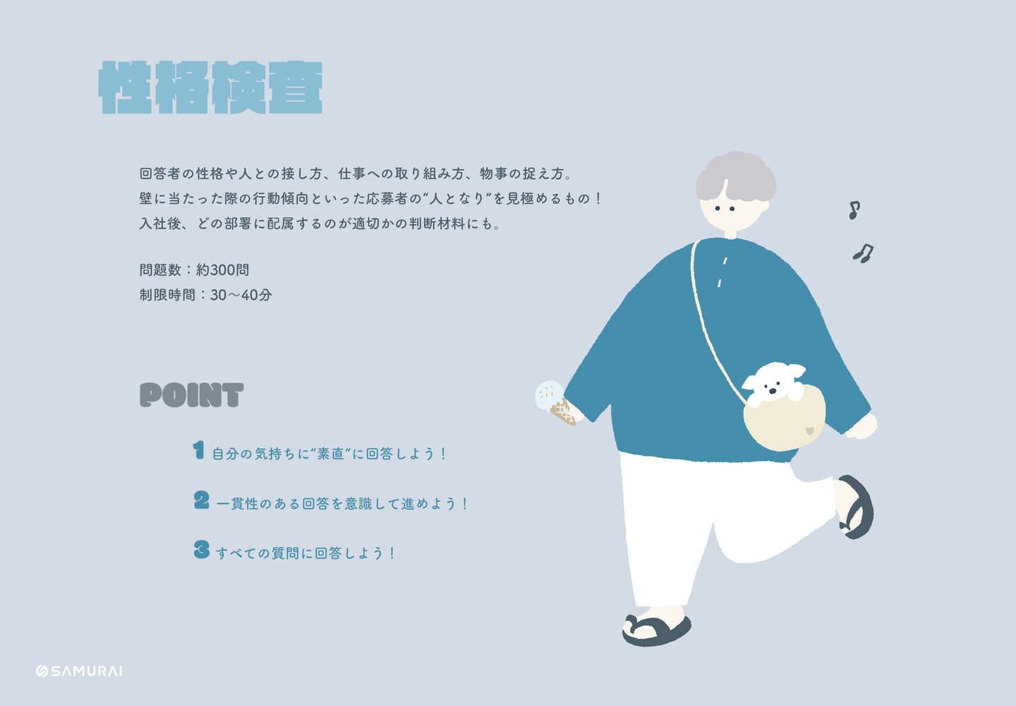 性格検査は、回答者の性格や人との接し方、仕事への取り組み方、物事の捉え方や壁に当たった際の行動傾向といった応募者の“人となり”を見極めるもの。自社の業務内容や社風に合うかどうかや入社後、どの部署に配属するのが適切かなどをみています。
