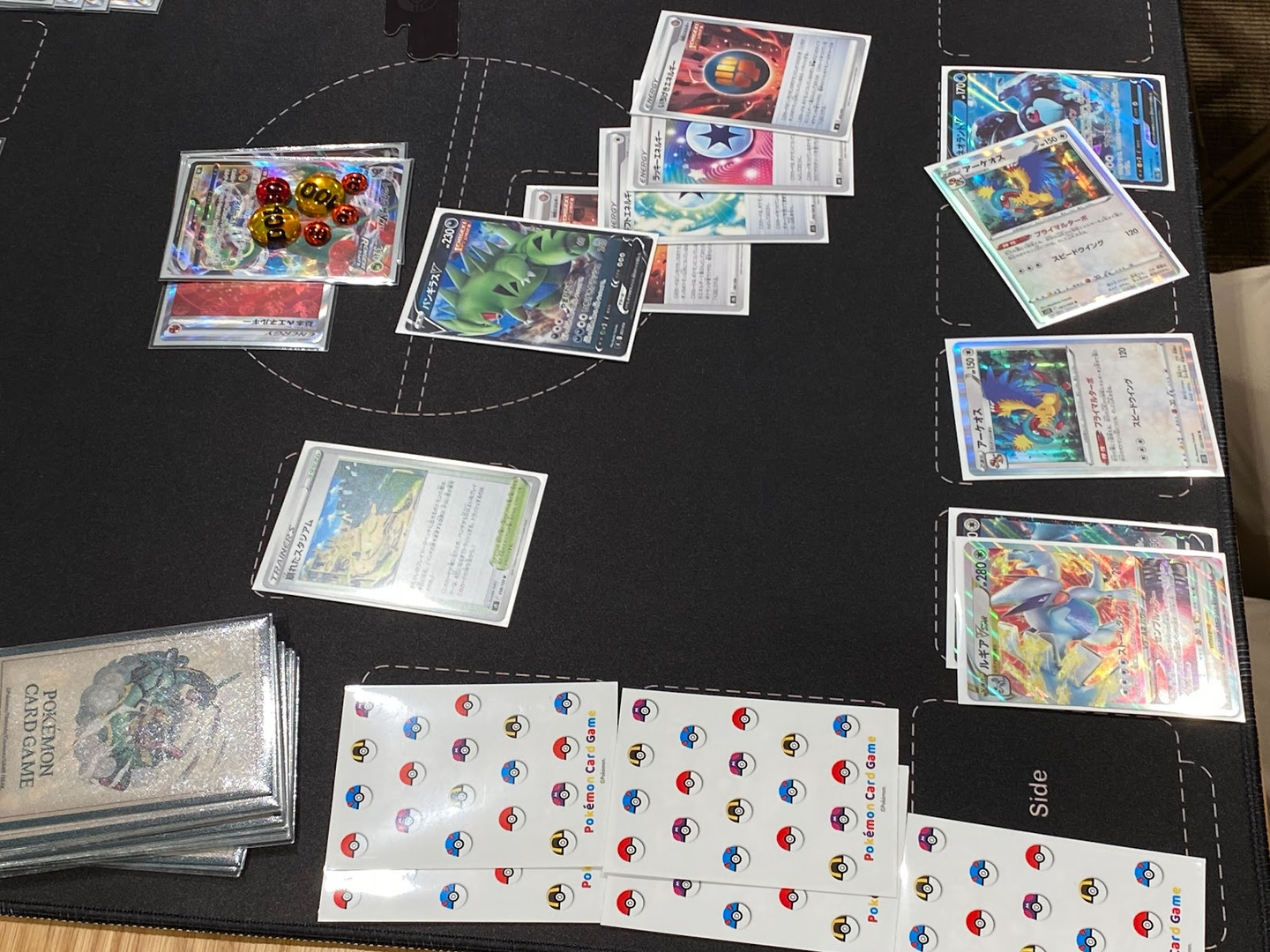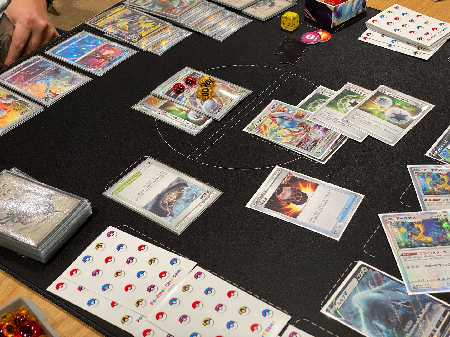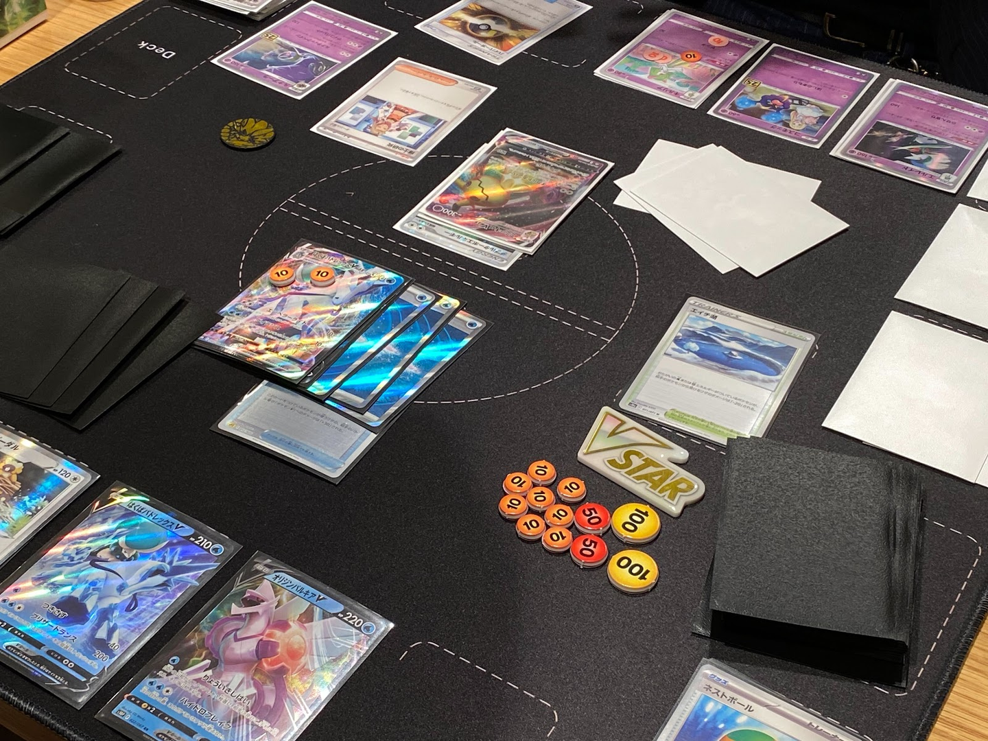 こちらもマイデッキ対決!「白馬パルキア」と「ミミッキュVmax」の対戦の様子。