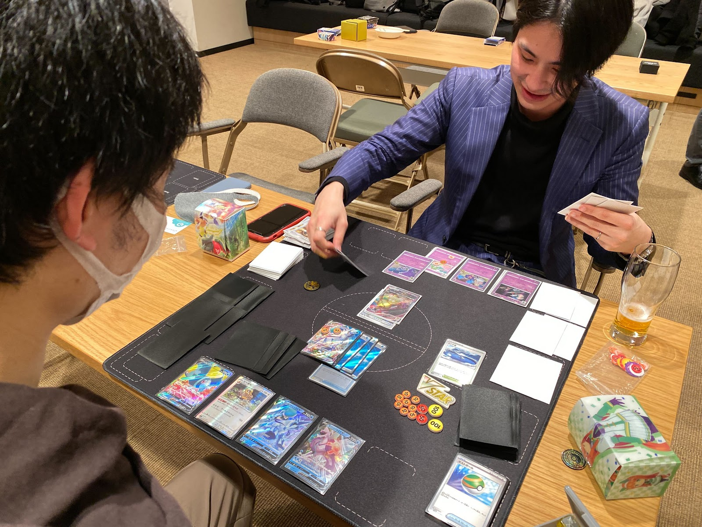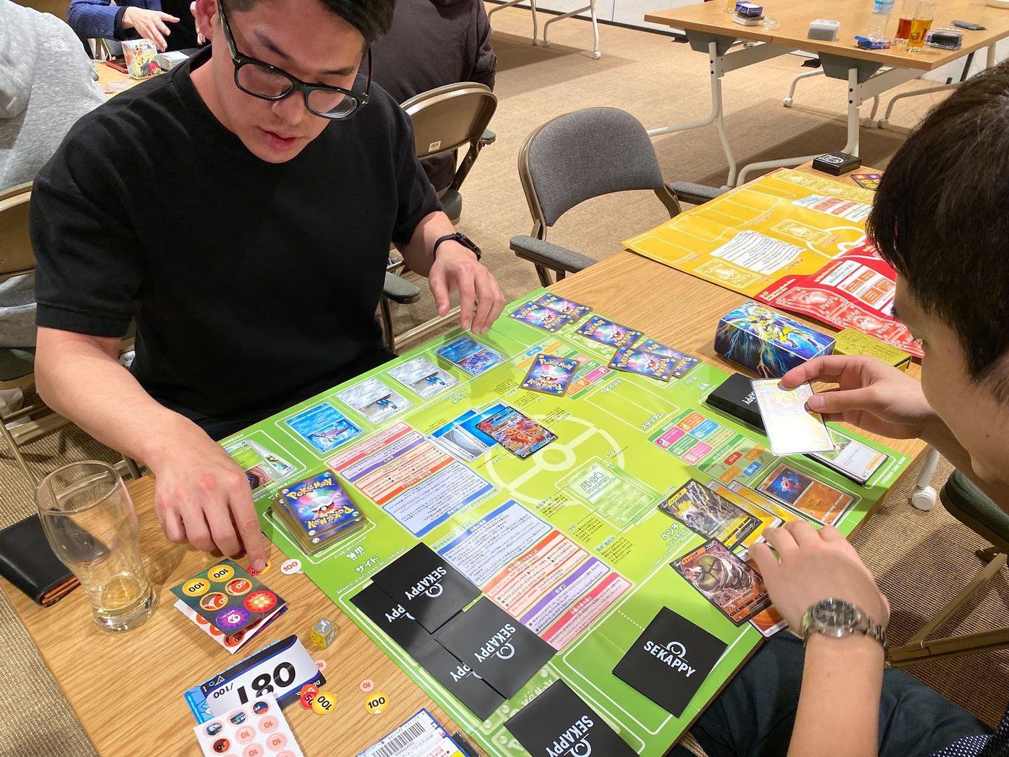 普段からポケカをやり込んでいる、Sekappy技術営業の茶圓の対戦の様子です。