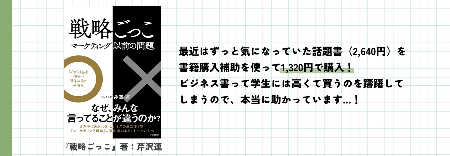月5,000円まで購入可能なので、ほしかったけど高くて諦めていたマーケ関連の書籍を沢山買えちゃいます。インターン生(アルバイト)も対象です。