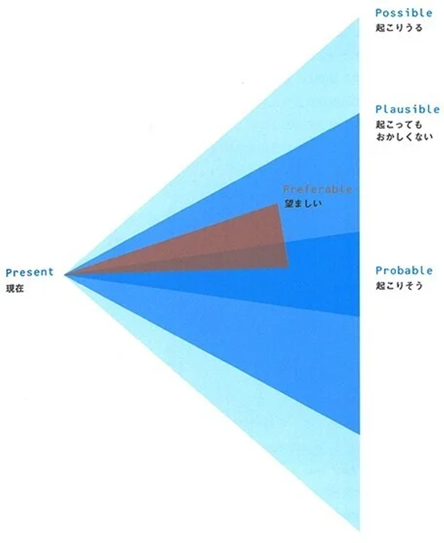 これは、現在”Present”に対して、潜在的な未来を現在から未来に広がる4つの円錐に分類しています。