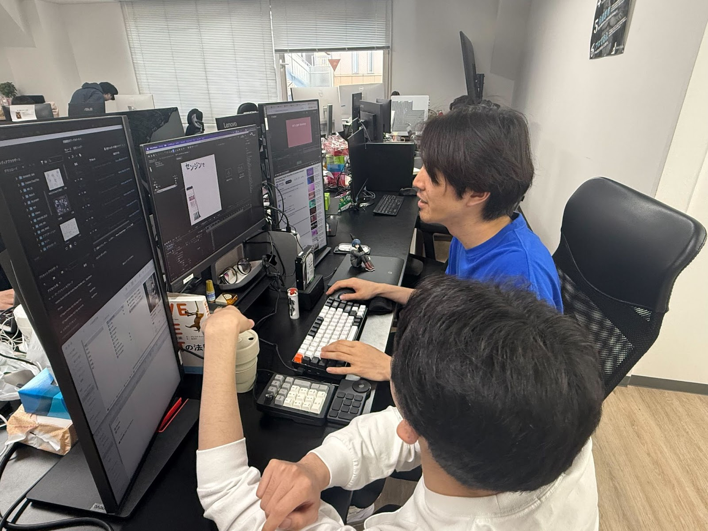 坂井:はい、完全にゼロからのスタートでした。最初は広告のアシスタント業務をしていたんですけど、谷川くんに「お前、絵描けるなら動画いけるやろ?」って言われて(笑)。そのときは軽いノリでしたが、「やってみるか」と思い、そこからPremiere Proを独学で学び始めました。