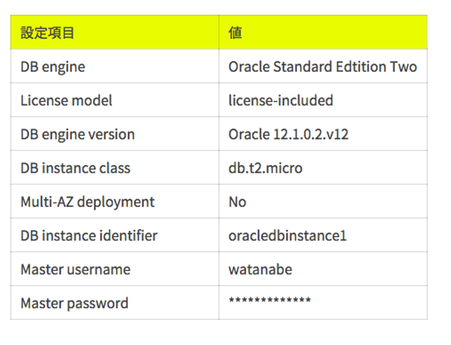 - テスト用のRDSは、下記のようなパラメータで作成しました。